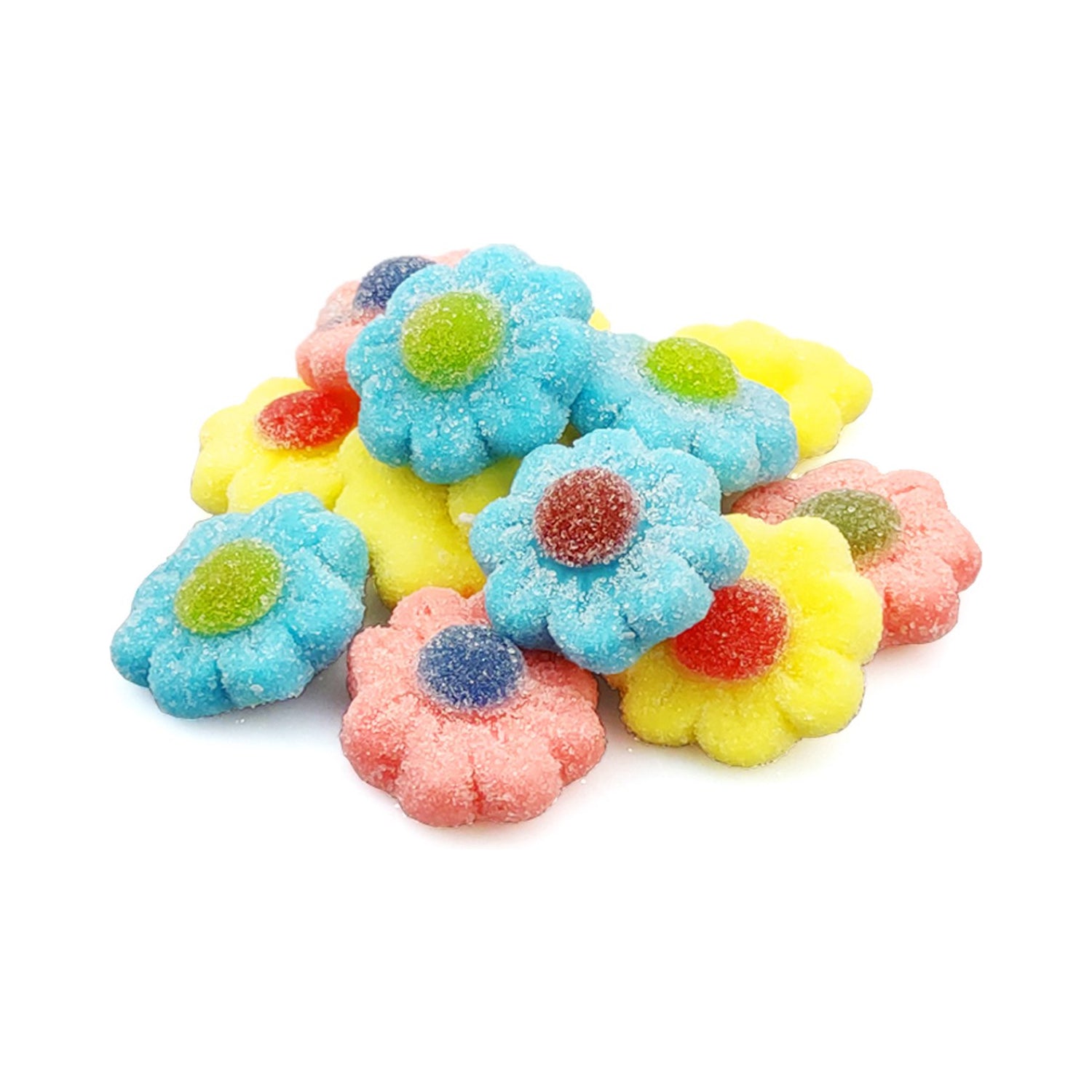 Een vrolijke bloementuin vol snoepplezier! Dulce Plus Gesuikerde Bloemen Assorti zijn zachte jelly snoepjes in bloemvorm, afgewerkt met een sprankelend suikerlaagje en uitgevoerd in verschillende heldere kleuren. Zoet, fruitig en heerlijk chewy — een echte eyecatcher in elke snoeppot 😋